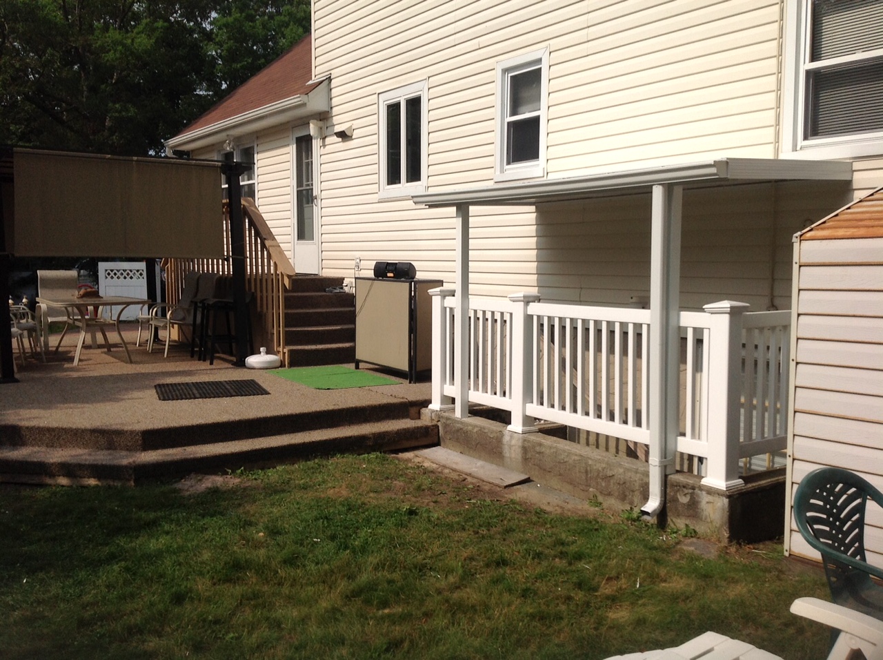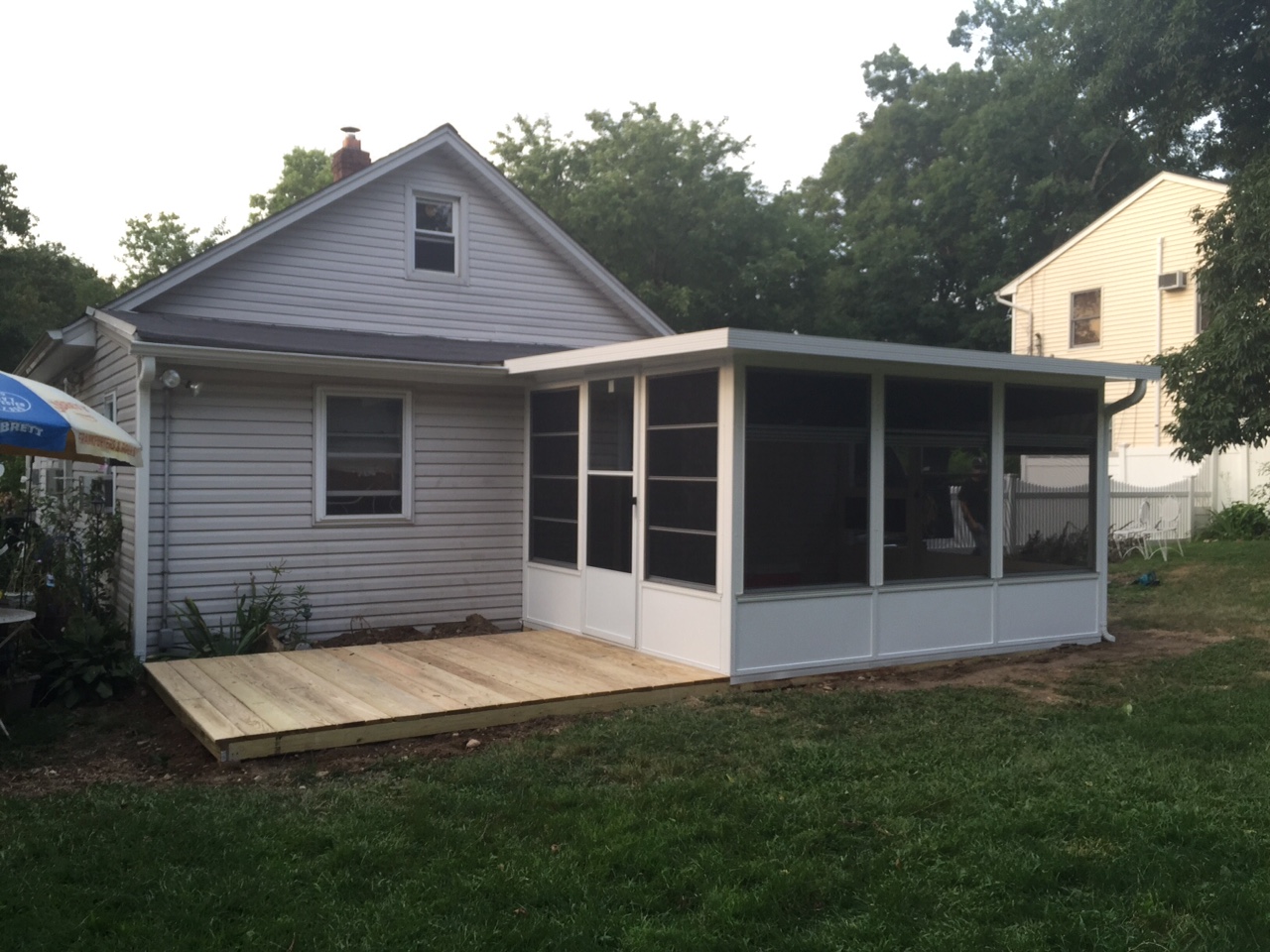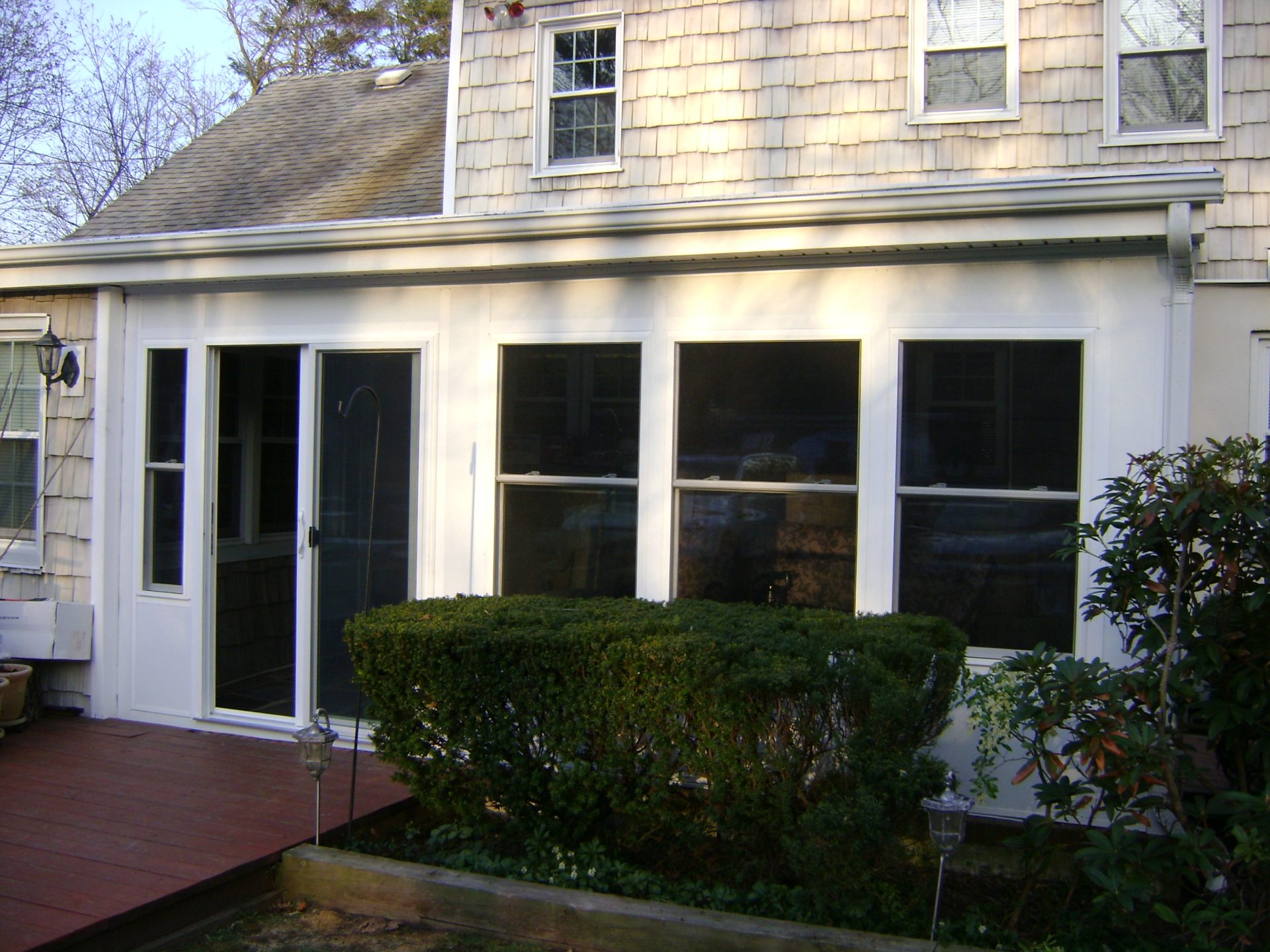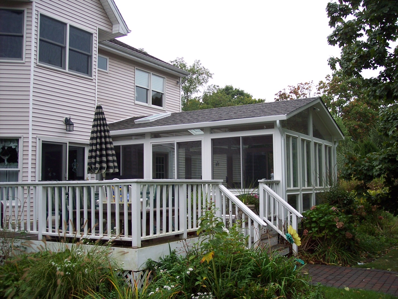 Gable Sunroom with synthetic decking steps and rails