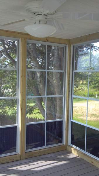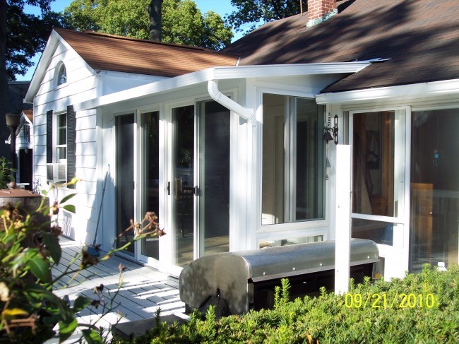 Gable sunroom in Bayport with glass sidelights