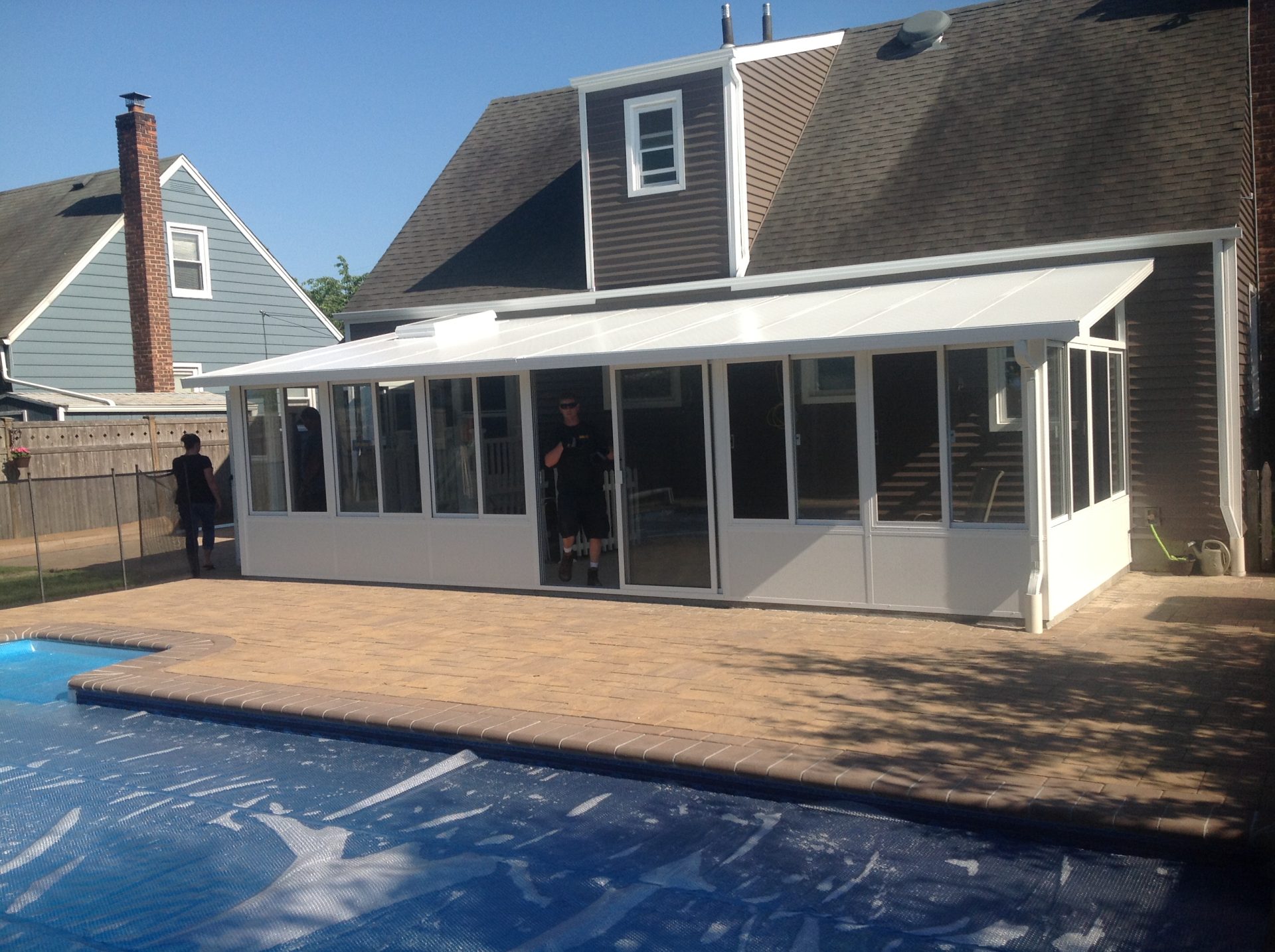 Gable Sunroom Levittown interior with house wall opened