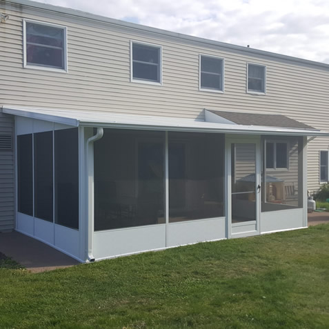 Gable Sunroom on ranch home with insulation and skirting