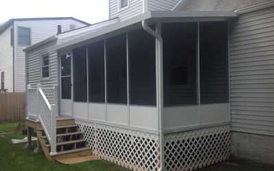 Gable Sunroom with synthetic decking steps and rails